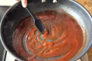 弱火にかけて一煮立したらハンバーグにかける。
