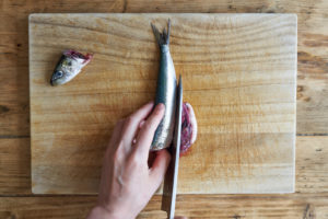 (※いわしが水っぽくなってしまうので、お腹の中しっかり拭き取ります。)