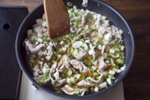 水溶き片栗粉を加え混ぜ、1分ほど煮立たせたら、