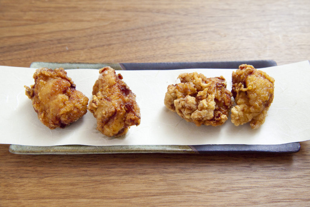 カリカリなら片栗粉。小麦粉入りは時間が経ってもジューシーに