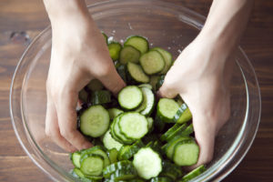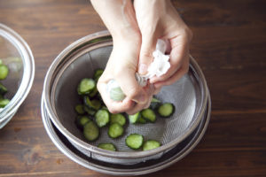 きゅうりは5mm厚さに輪切りにしてボウルに入れ、