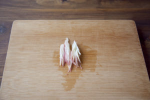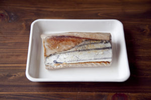 押し付けながら焼き、皮目に焼き目がついたら、身の面も色が変わる程度にさっと焼く。