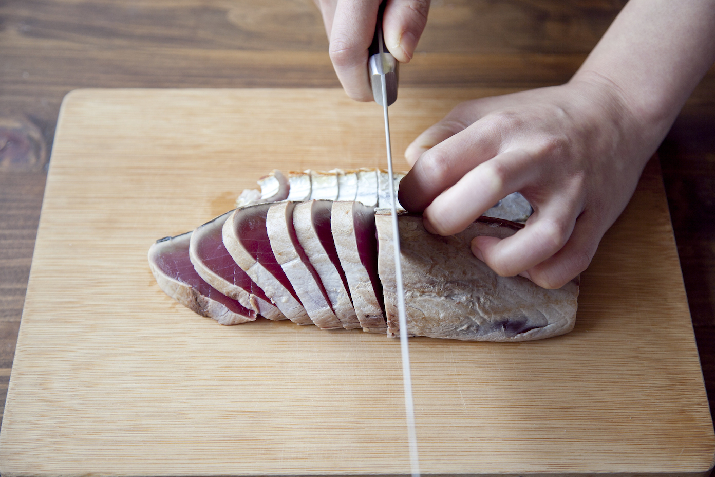 刺身用のかつおからフライパンで作る、基本のかつおのたたきの作り方です。