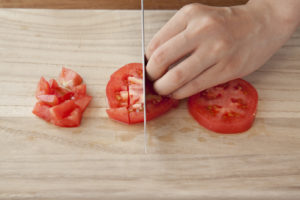 なので、包丁でトマト、にんにく、しょうが係と玉ねぎ係に分かれるとスムーズです。