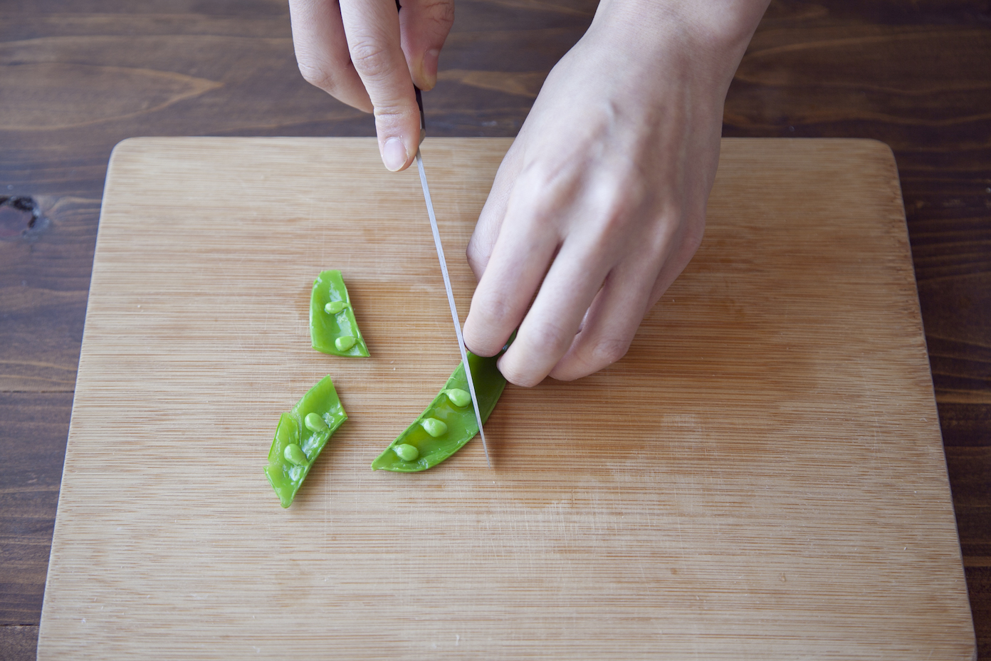 ごはんと一緒に盛り付け、スナップエンドウを散らす。
