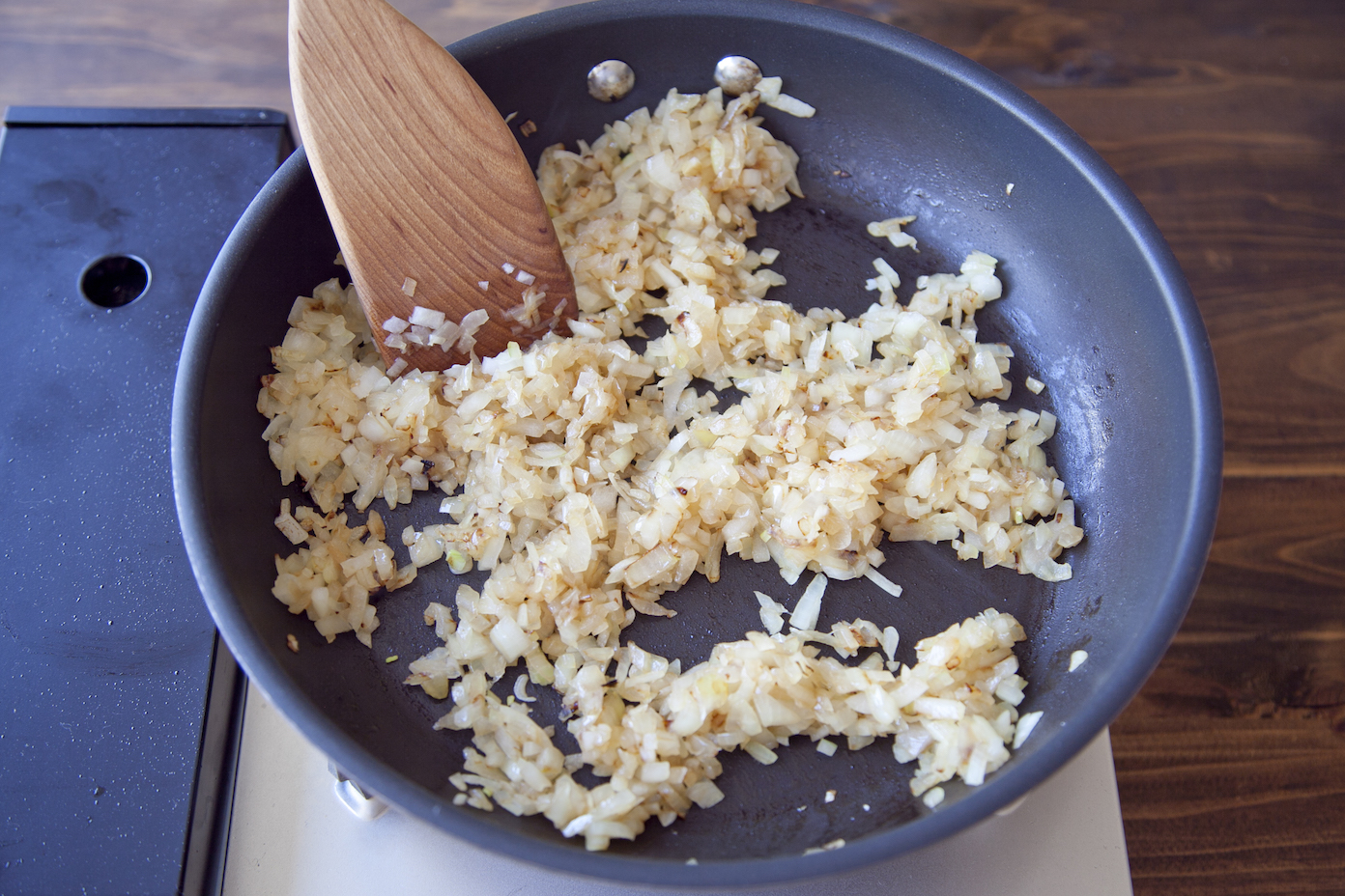 サラダ油を熱し、強めの中火で玉ねぎを炒める。