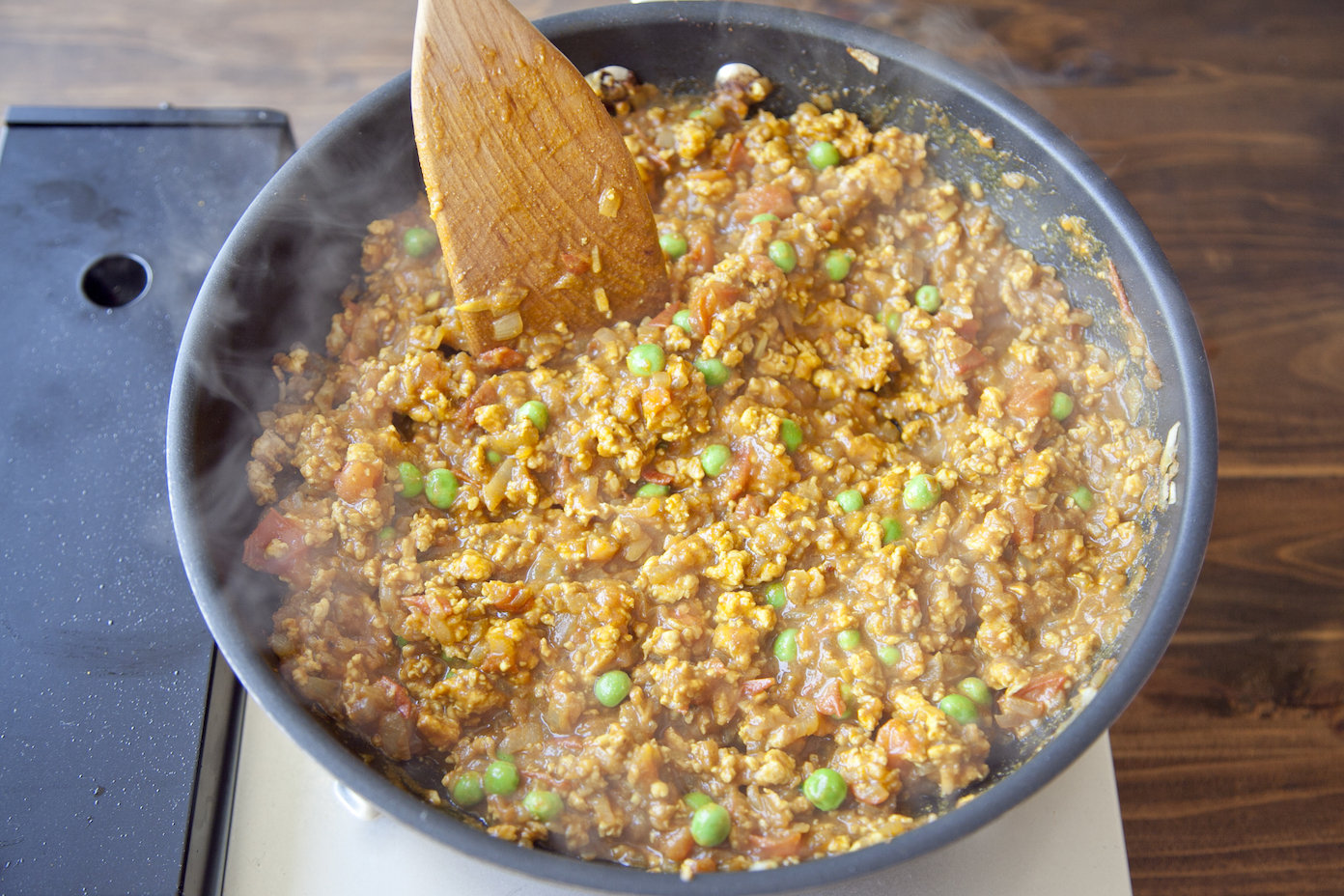 グリーンピース、スナップエンドウと春の豆をたっぷり使ったキーマカレーの作り方です。