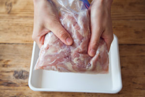 鶏肉は袋に入れて塩麹を揉み込んで冷蔵庫で一晩(1時間以上)おく。