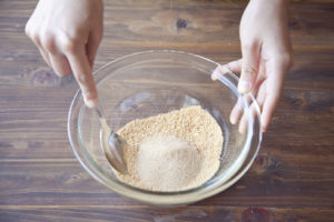 1をざるでふるい、砂糖、塩を混ぜてきなこにする。