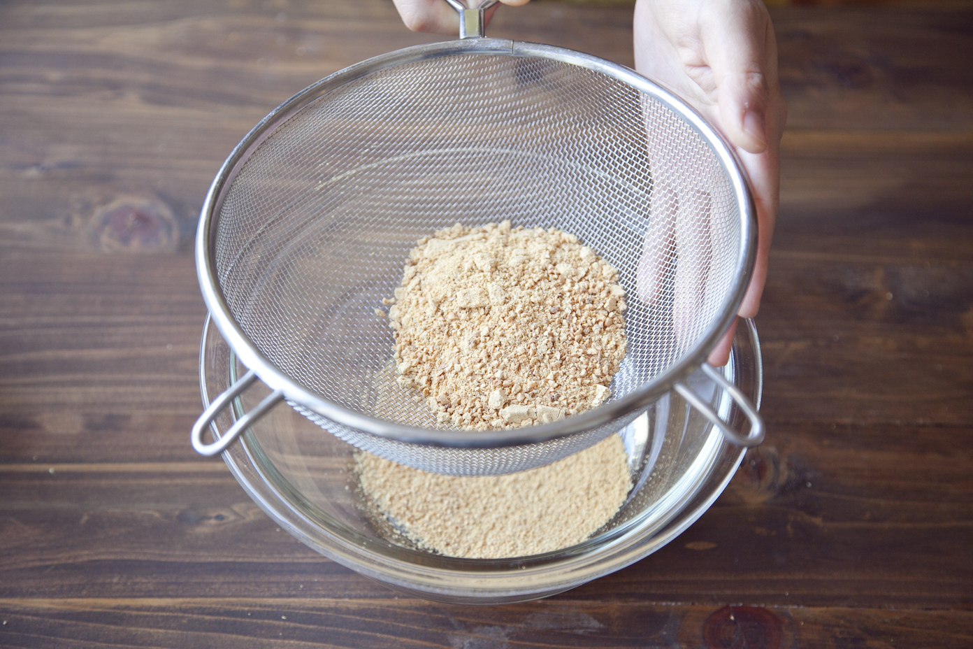 1をざるでふるい、砂糖、塩を混ぜてきなこにする。