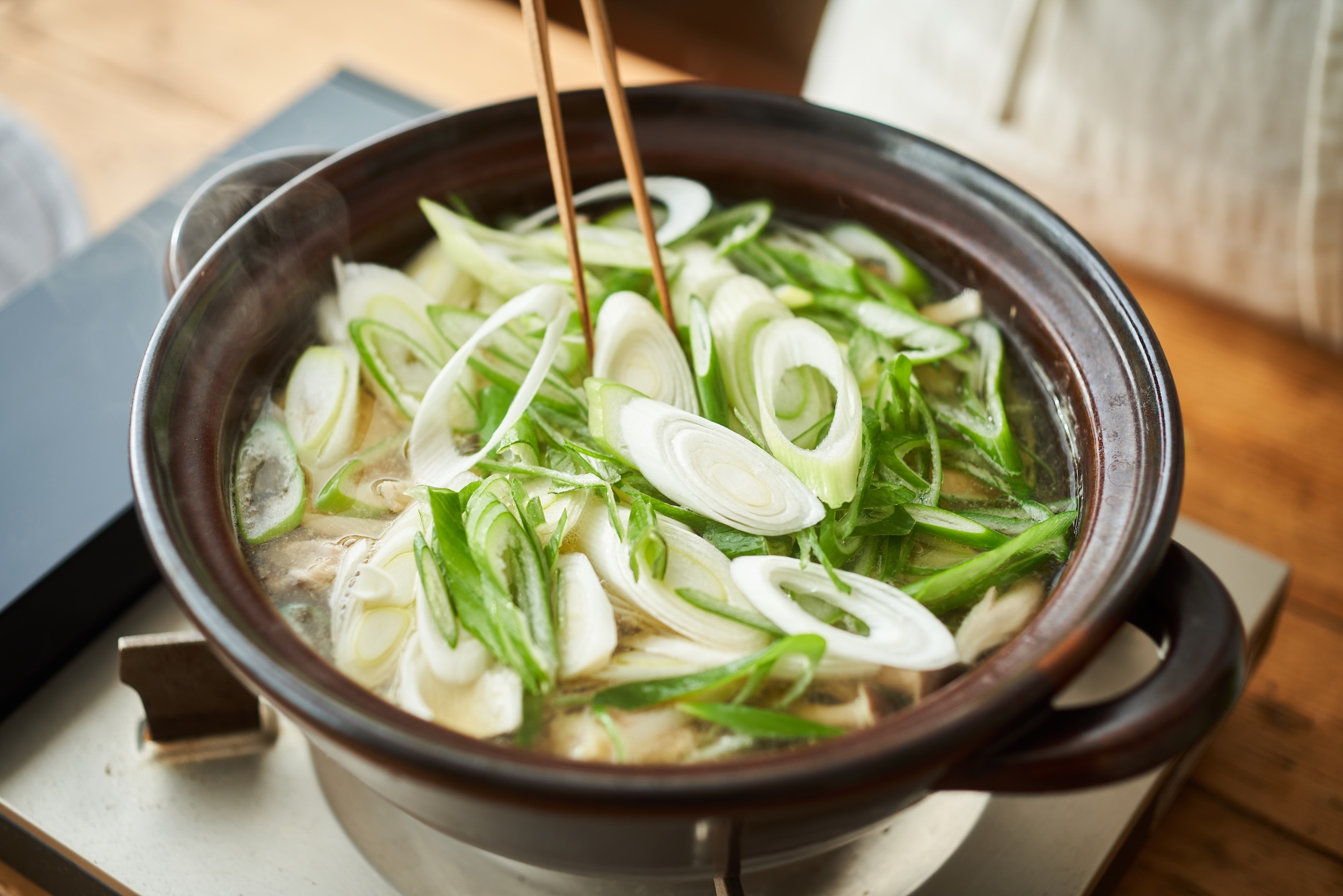 蓋をして煮たったらしめじ、ねぎを入れ、弱火で3〜4分煮る。