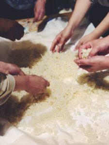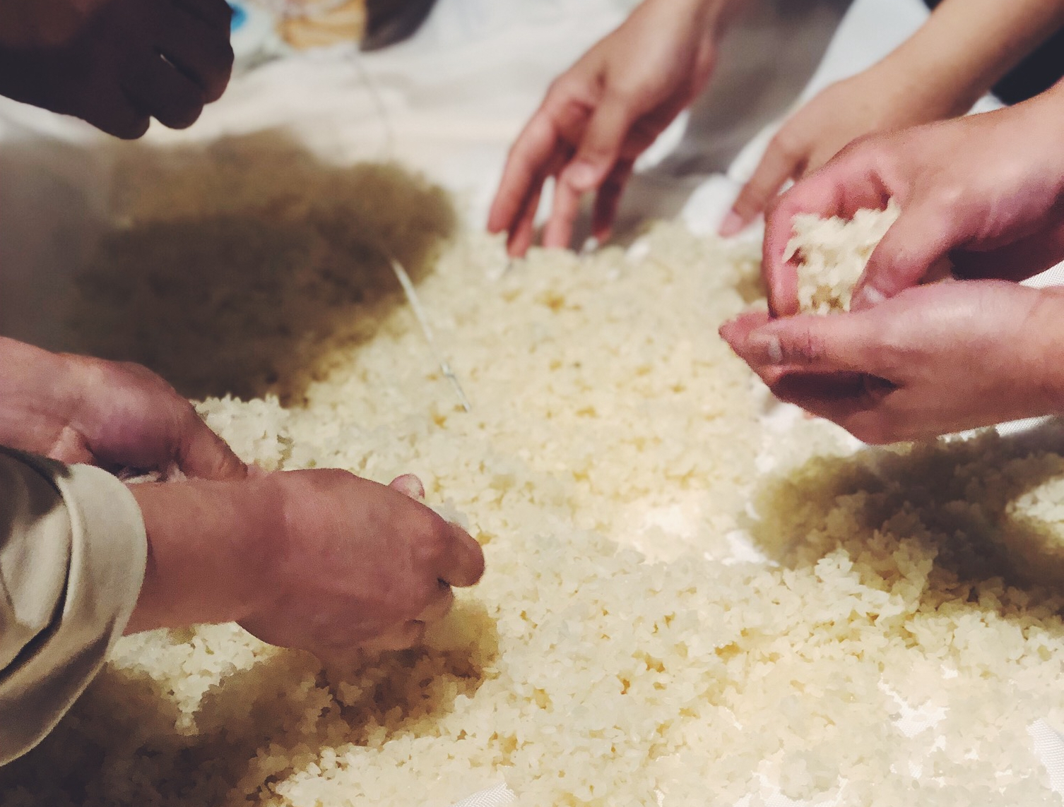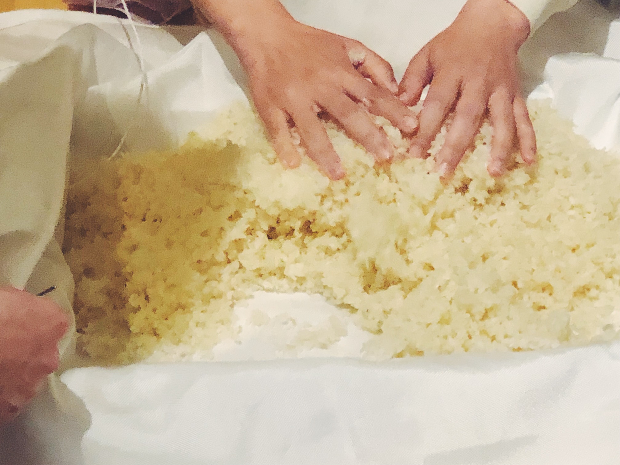 麹菌がうまく育つよう、麹菌と向き合う時間です…。