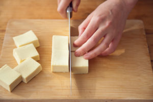 手ではさむようにして水気を絞り、それぞれ4等分に切る。