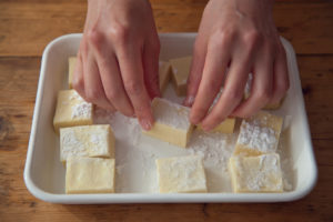 フライパンにサラダ油の半量を中火で熱し、高野豆腐を入れて2〜3分焼く。