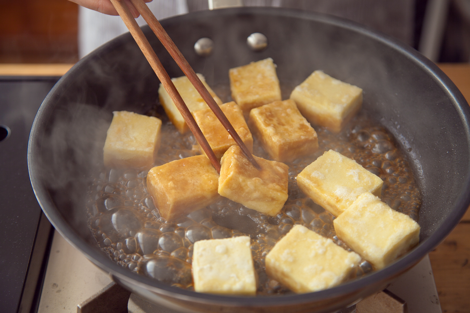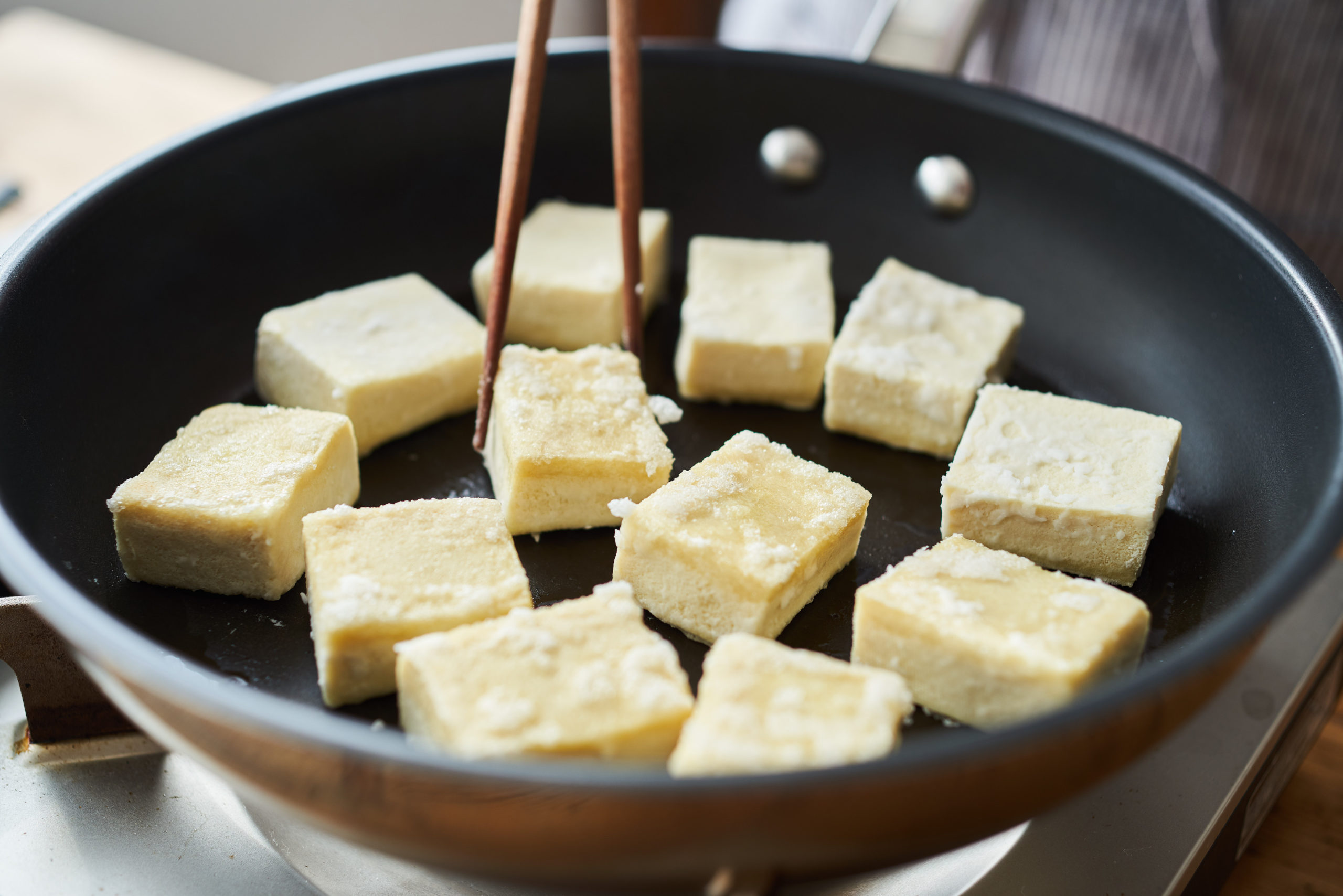 フライパンにサラダ油の半量を中火で熱し、高野豆腐を入れて2〜3分焼く。