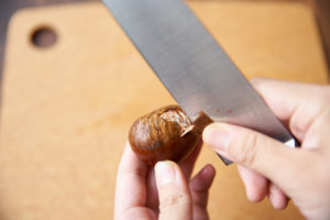 栗のおしりの部分に包丁で少し切り込みを入れ、