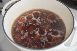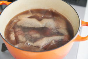 (※重曹を加えることでしっかりとアクを抜きます。)