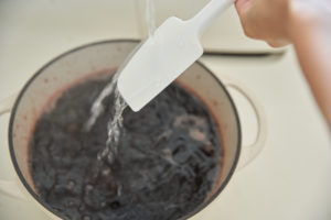 ひたひたの水と砂糖の半量を加え、中火にかける。