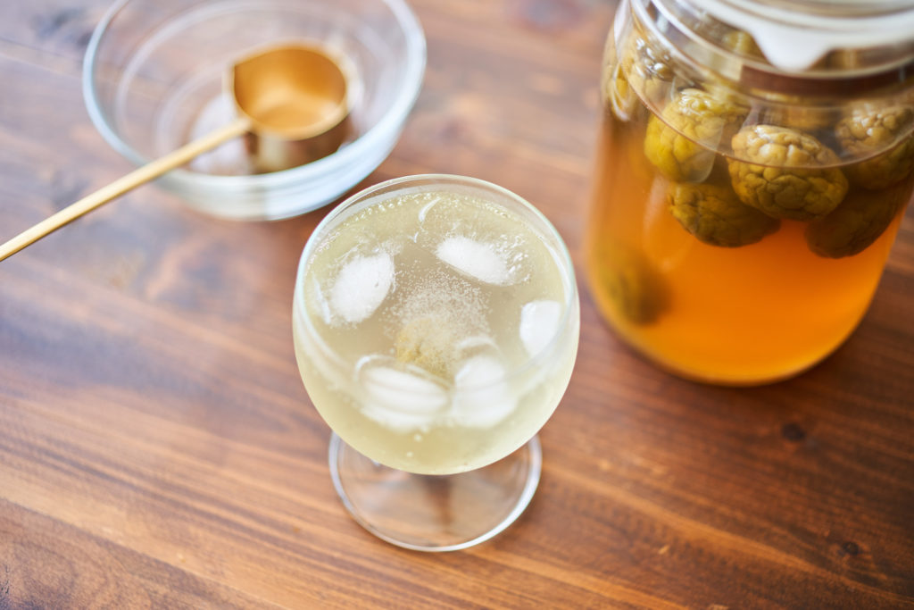 炭酸水で割ってぐいっと飲むと元気がでてきます◎