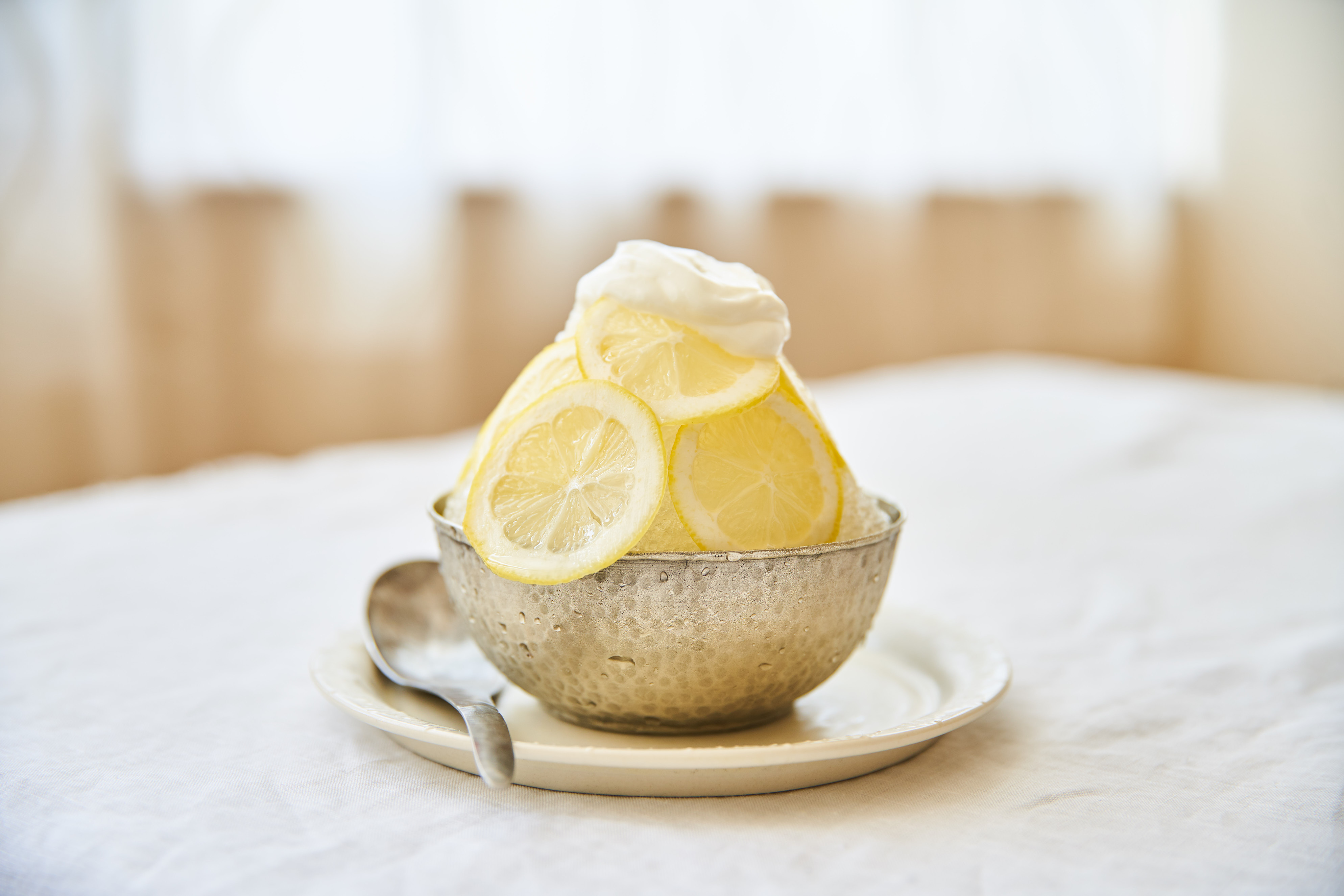 今回は第二弾、輪切りのレモンをたっぷり飾った可愛らしいレモンのかき氷です。