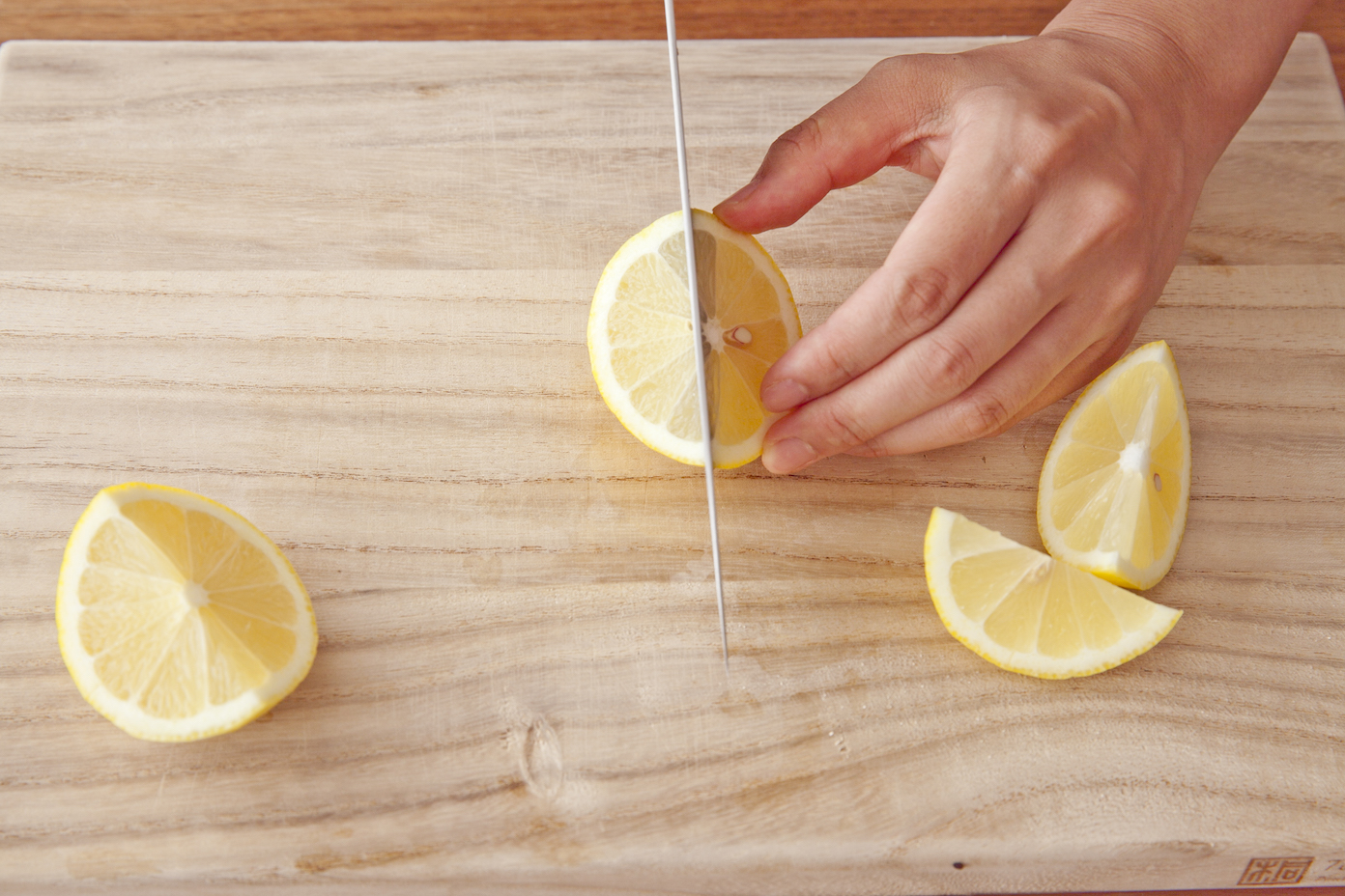 【1】レモンを「X」に切り込みを入れる。