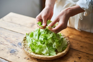 レタスは食べやすい大きさにちぎる。豆苗は半分の長さに切る。