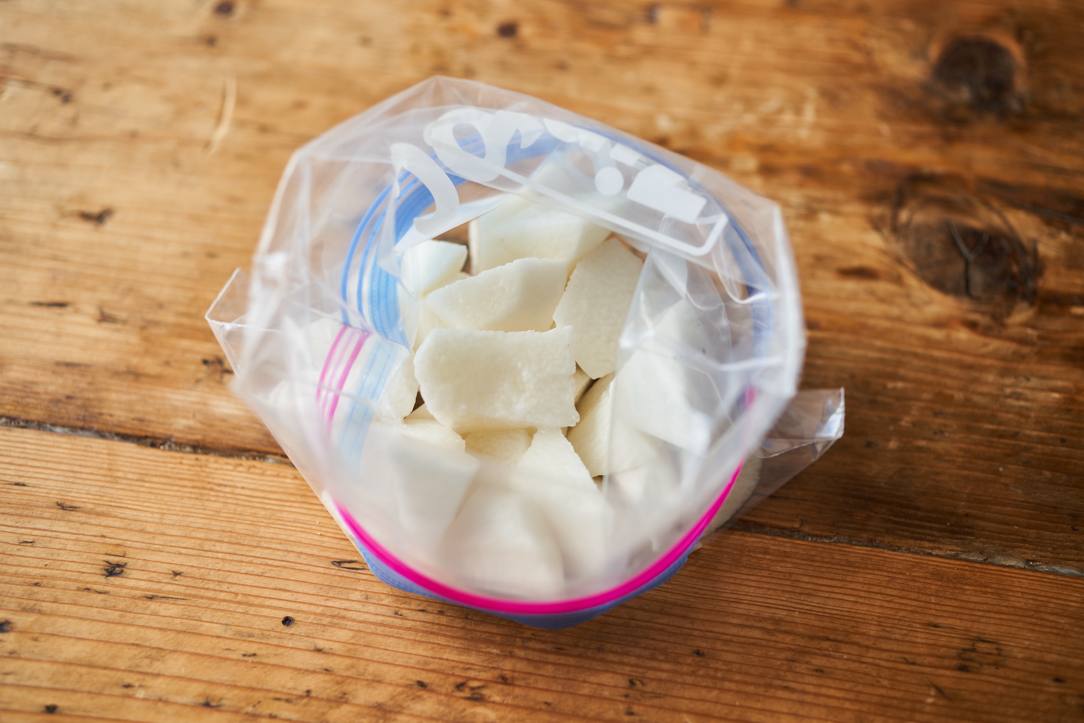 (A)が熱いうちに1の袋に加え、柑橘の皮も加えて揉み、冷蔵庫で30分ほどおく。
