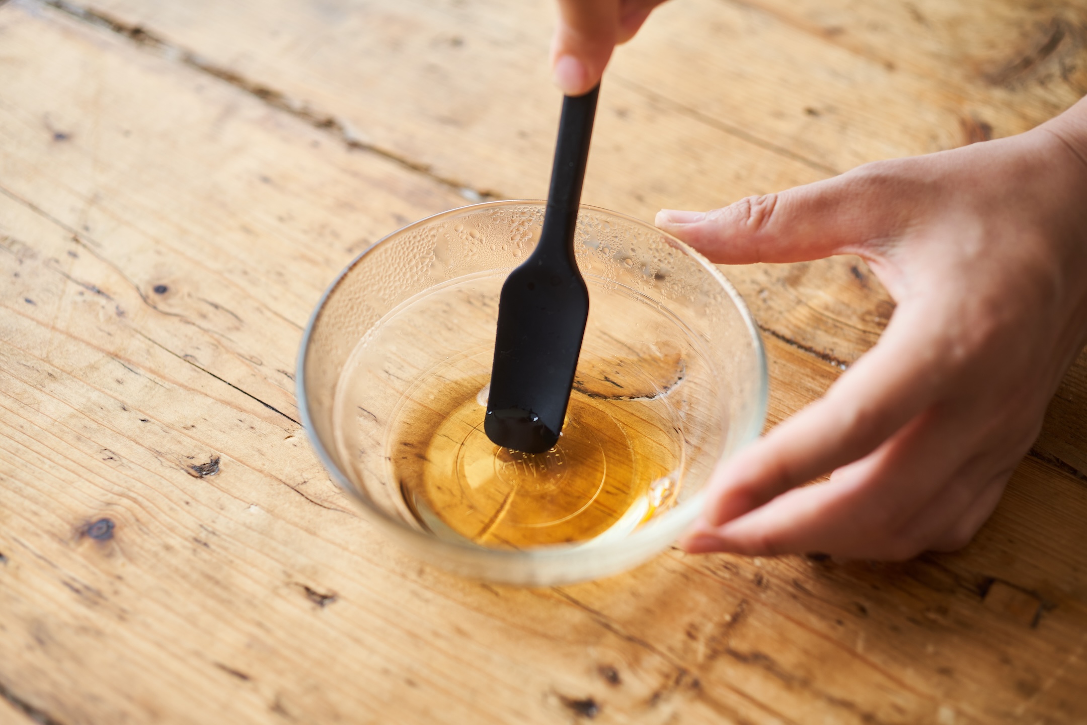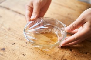 耐熱容器に(A)を入れ、ふわりとラップをかけて電子レンジ600Wで30秒加熱し、混ぜる。