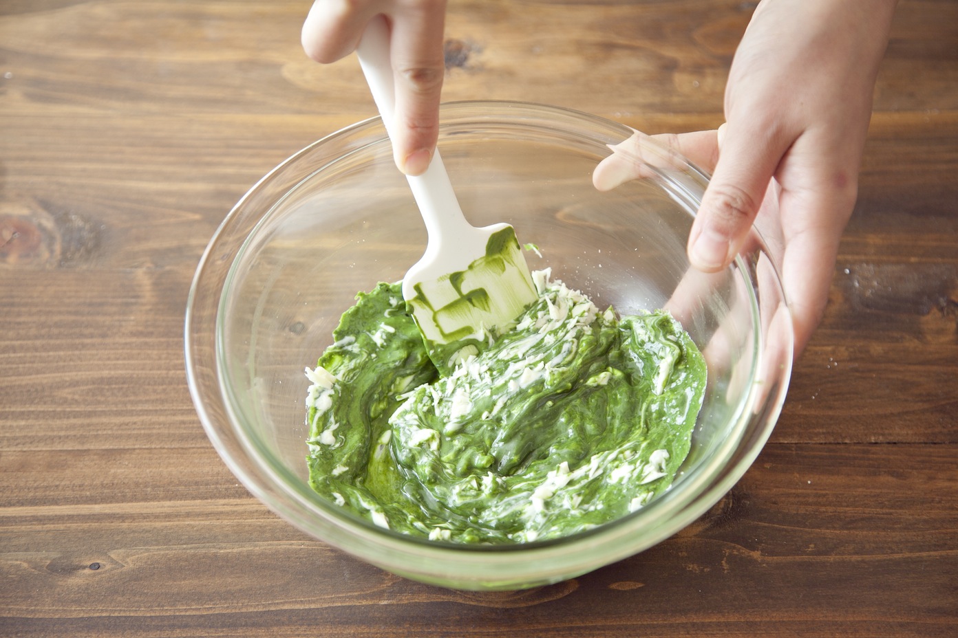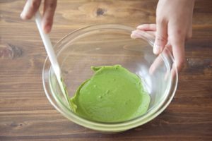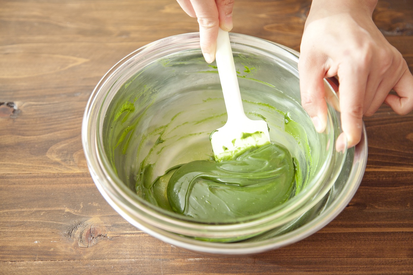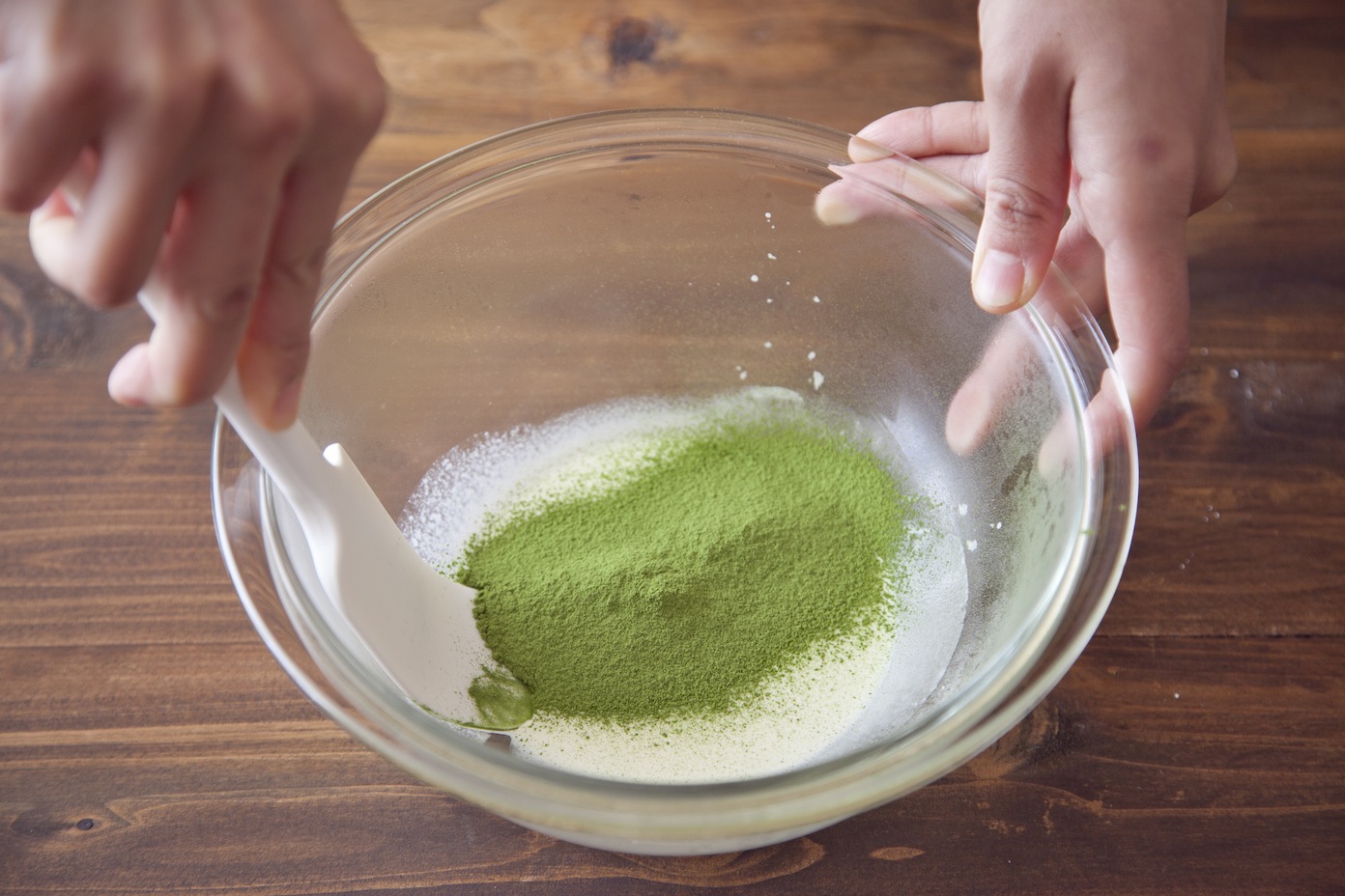 抹茶をふるい入れ、ダマがなくなるまでよく混ぜる。