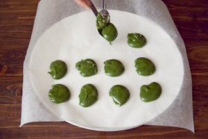 クッキングシートを敷いた皿の上にスプーンで一口大程度に落とす。