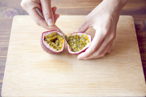 パッションフルーツ:1個(※なければマンゴーの量を20gほど増やしてください。)