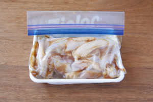 【1】ジッパー袋に手羽中、(A)をいれて揉み込み、30分以上(できれば一晩)冷蔵庫に入れておく。