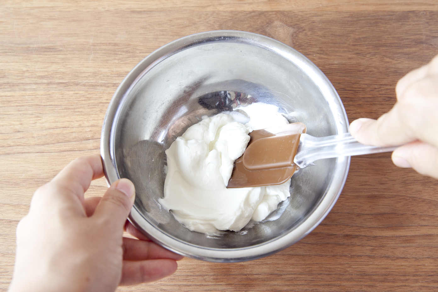 【4】水切りヨーグルトをなめらかになるように混ぜる。