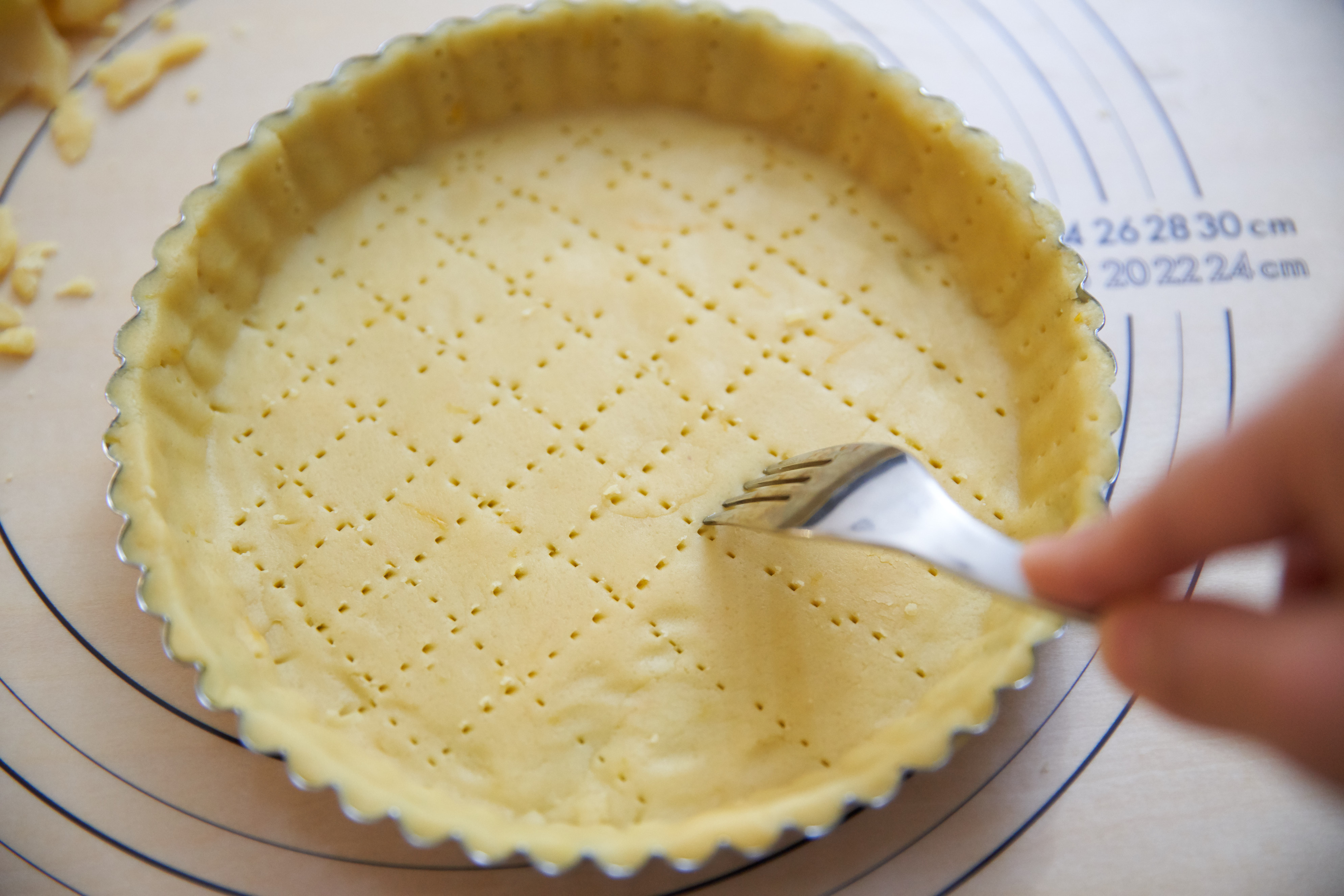 クッキングシートとタルトストーンを外して、さらに5分〜8分焼く。