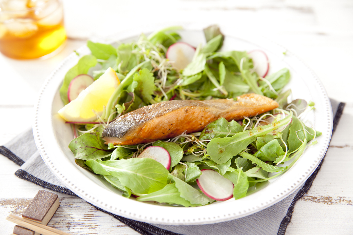 ●もりもりサラダと鮭のムニエル バター醤油ソース