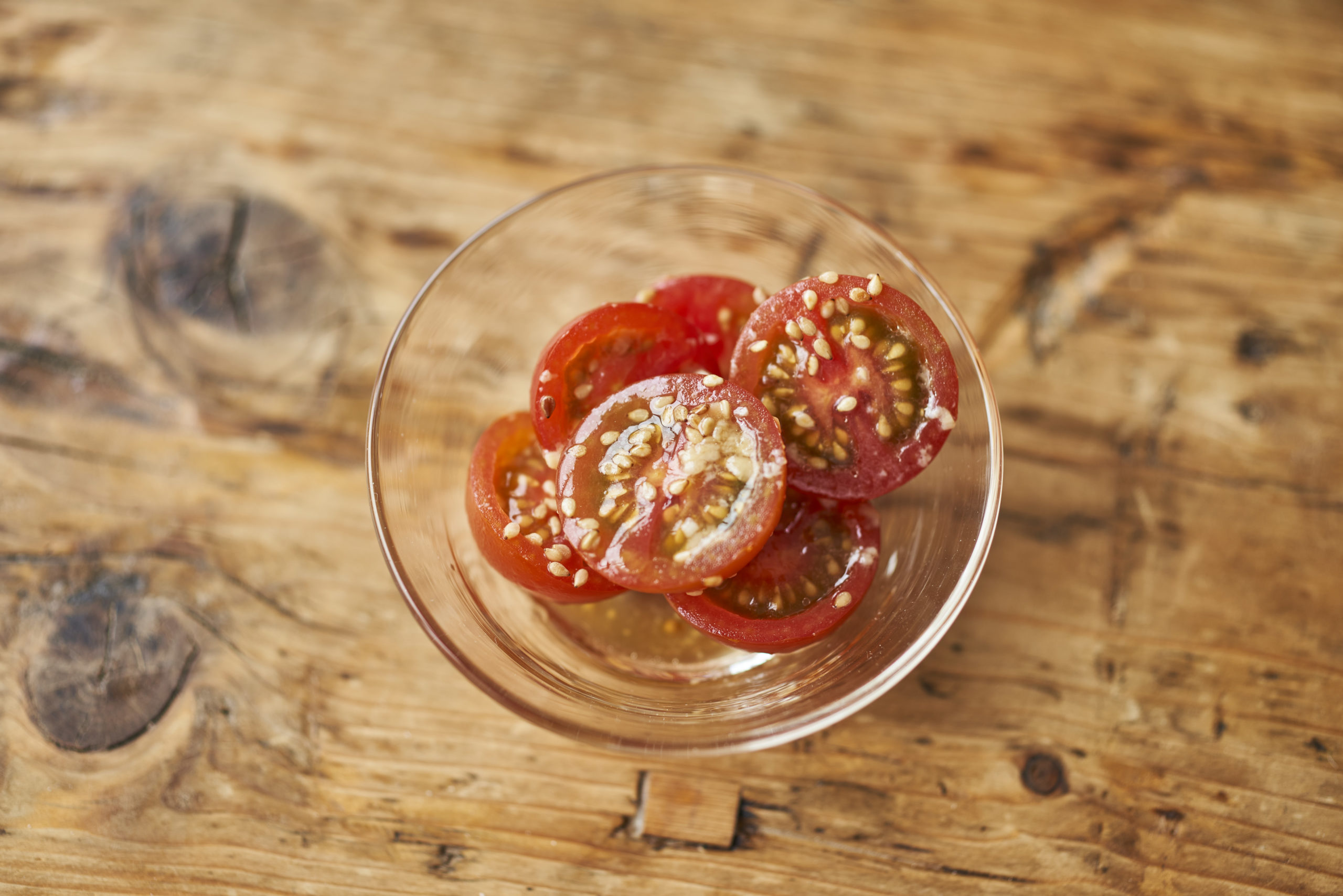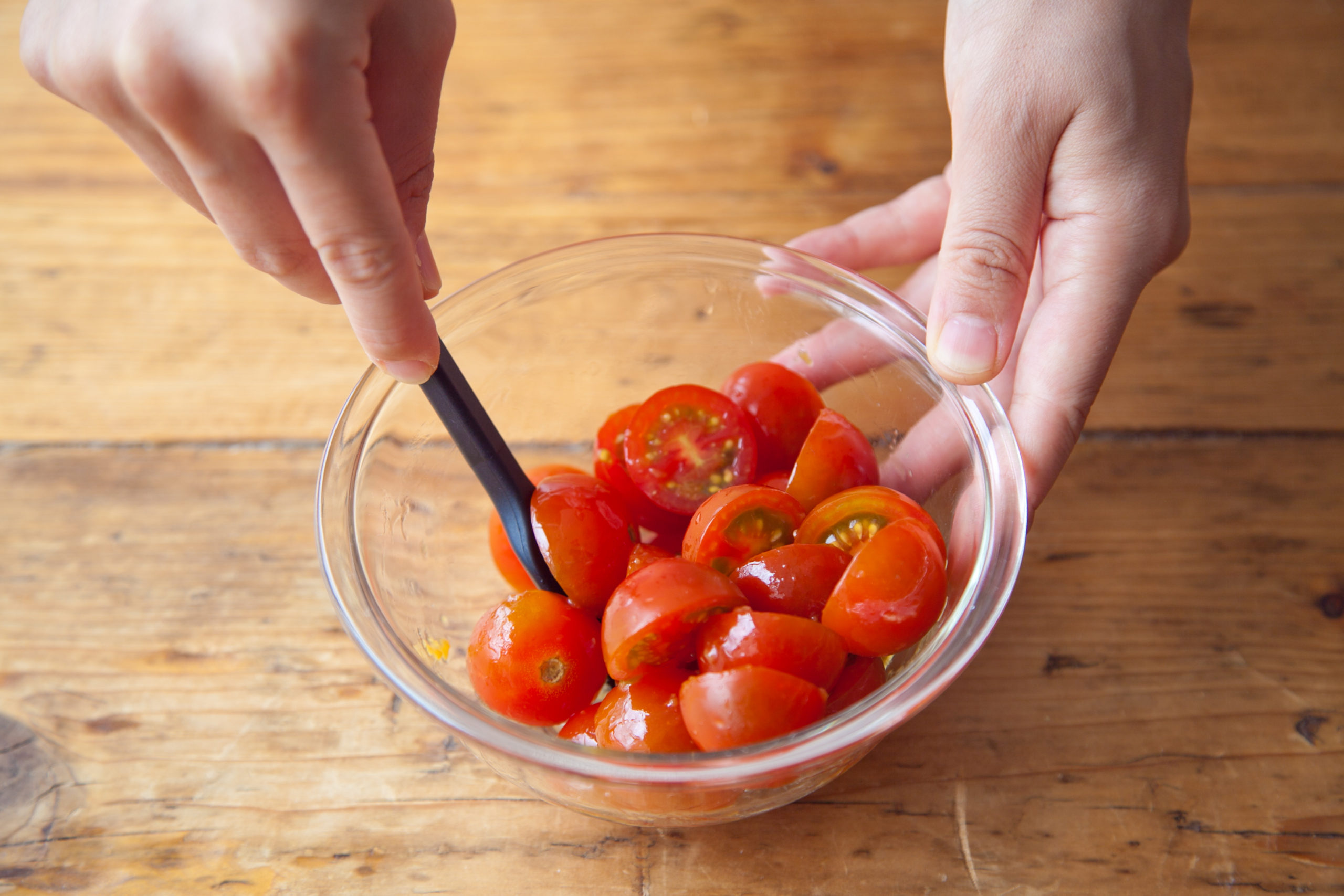 混ぜるだけで簡単!ミニトマト、醤油麹のナムルの作り方です。