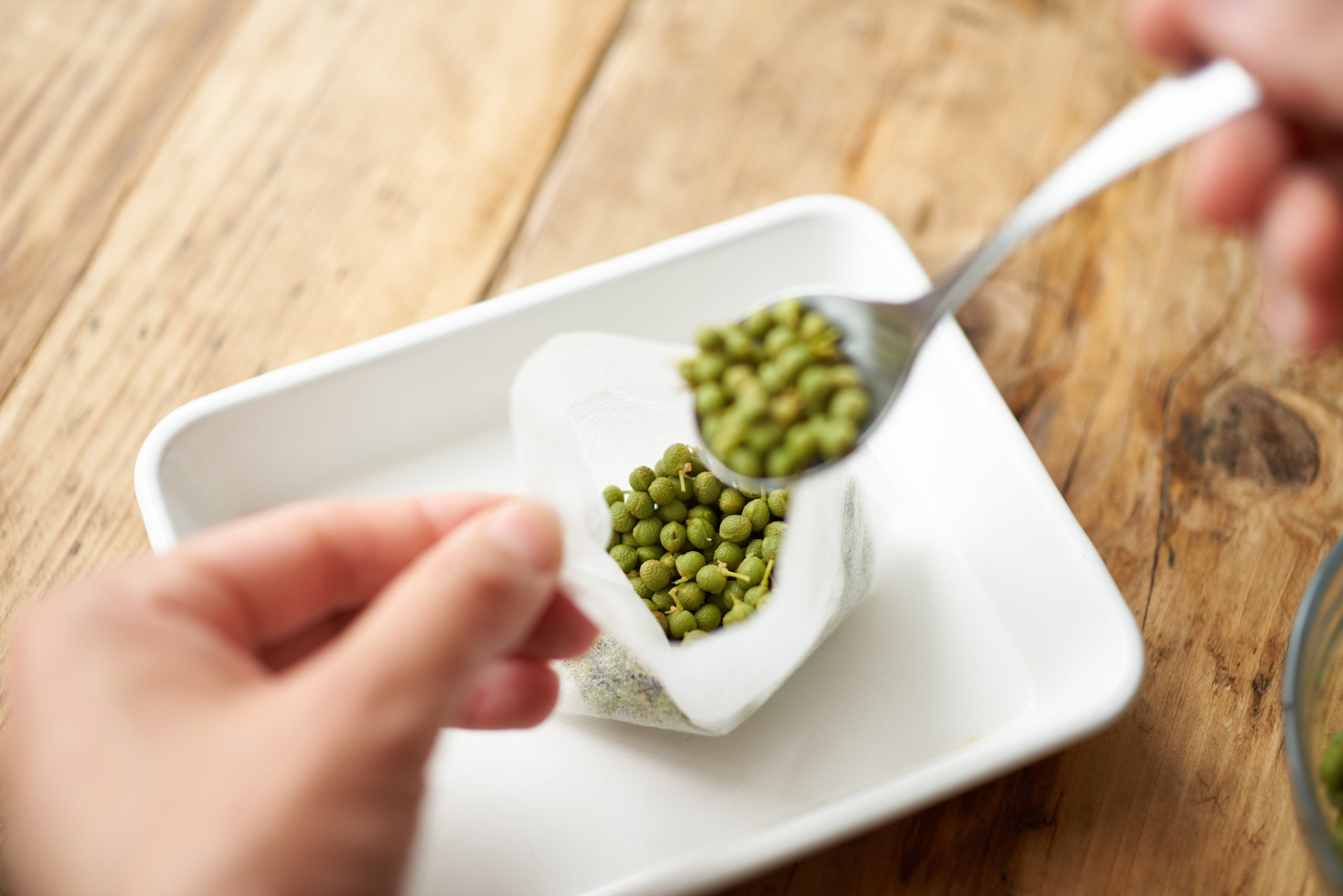 ・実山椒は清潔な瓶に移して冷蔵庫で保存する。