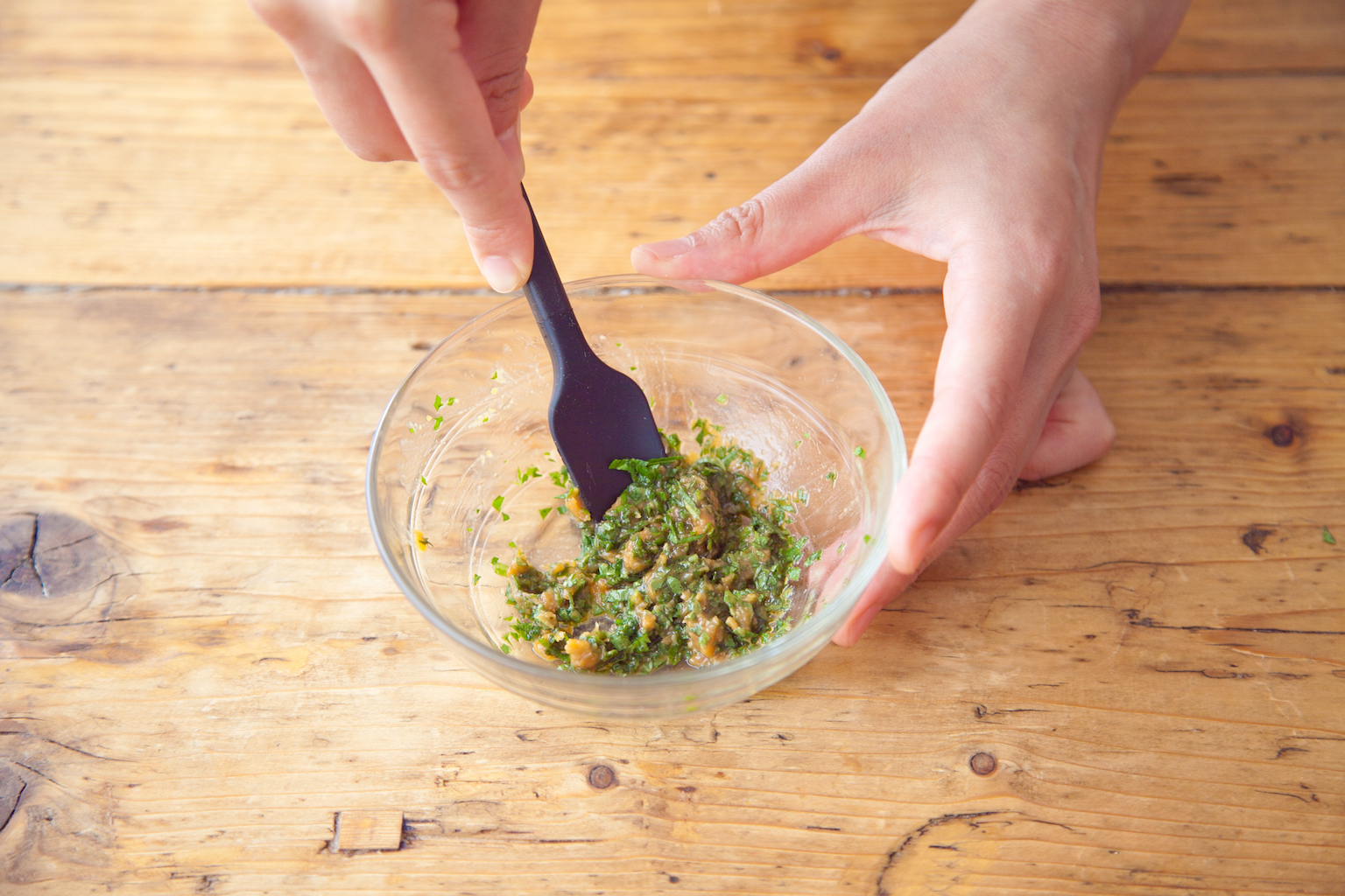 青じそは刻み、みそ、みりんと混ぜ合わせる。