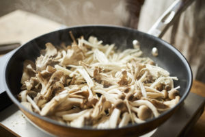 きのこに焼き目がつくまで触らずにおき、焼き色がついたら全体を炒め合わせる。