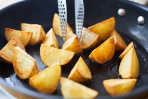 1の新じゃがいもを水気を軽く拭き取って入れ、こんがりと焼き色がつくまで焼く。