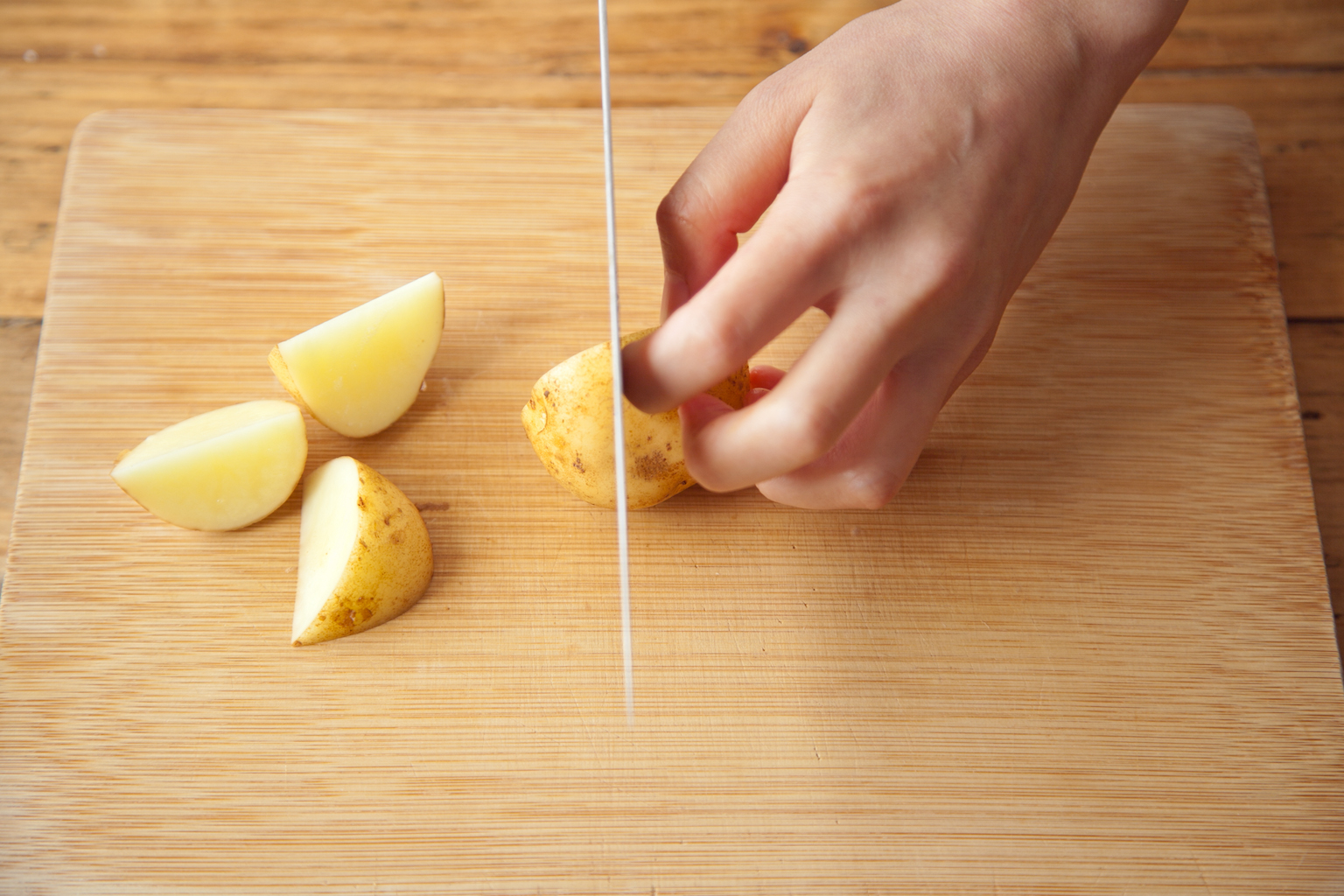 新じゃがいもは6等分に切り、耐熱皿にのせ、