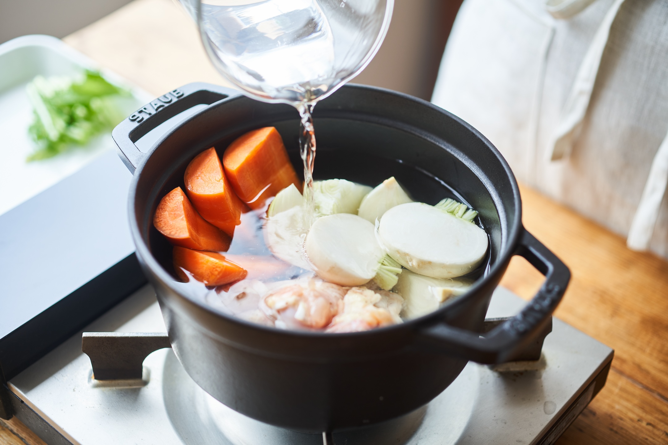 にんじん、かぶ、玉ねぎとごろごろ野菜がたっぷりのポトフ。