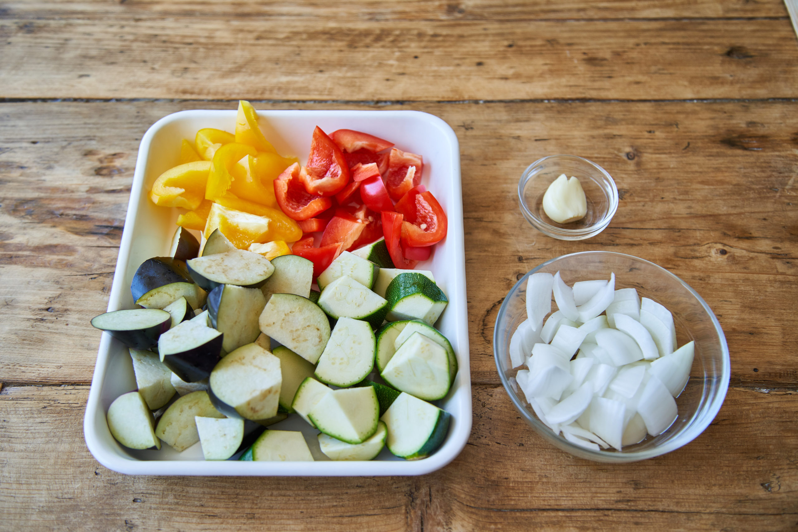 ズッキーニ、パプリカ、なすは小さめの乱切りにする。