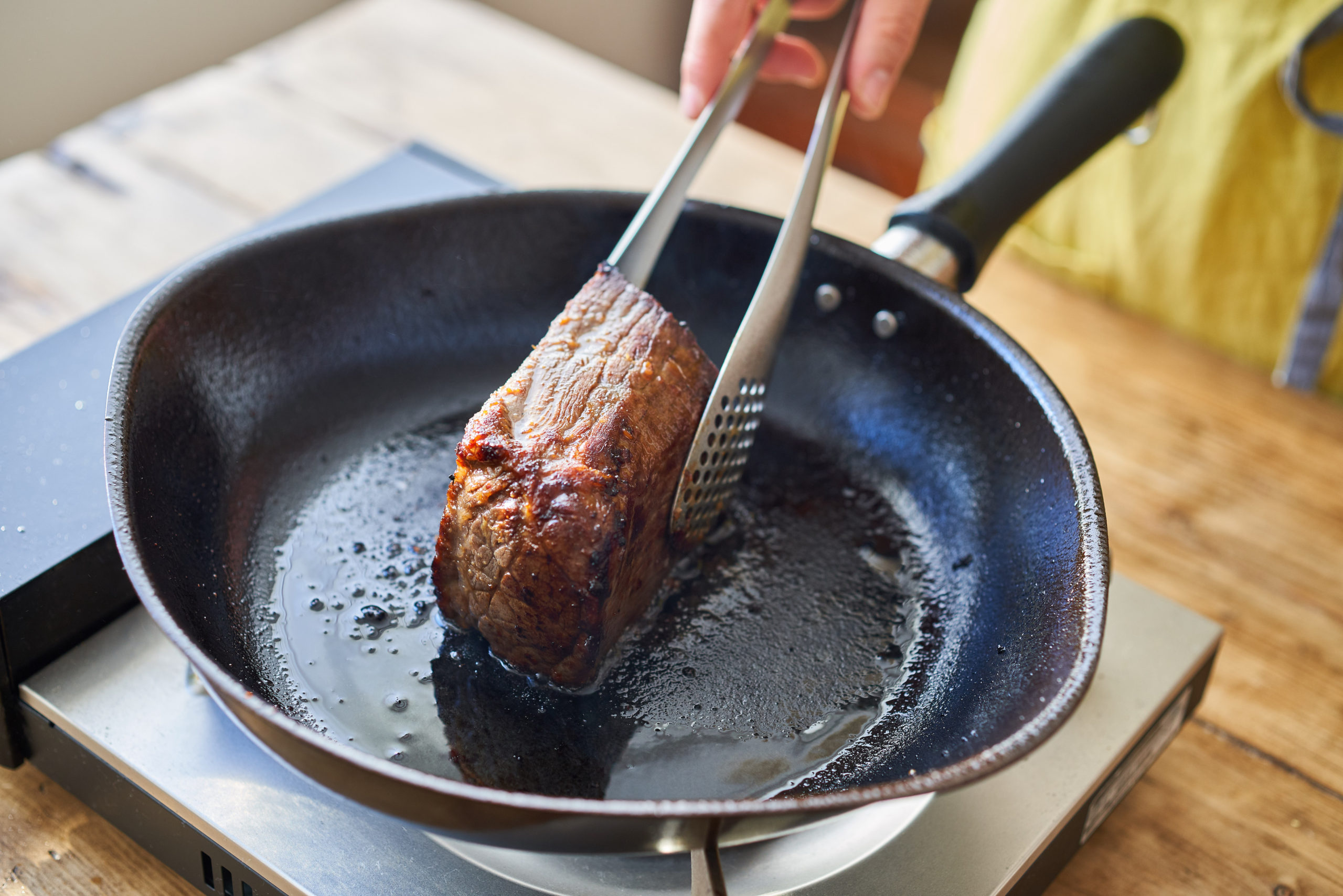 牛肉は調理する1時間前に冷蔵庫から出して常温に戻し、