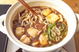 冷凍うどんで簡単に作れる、「みそ煮込みうどん」の作り方です。