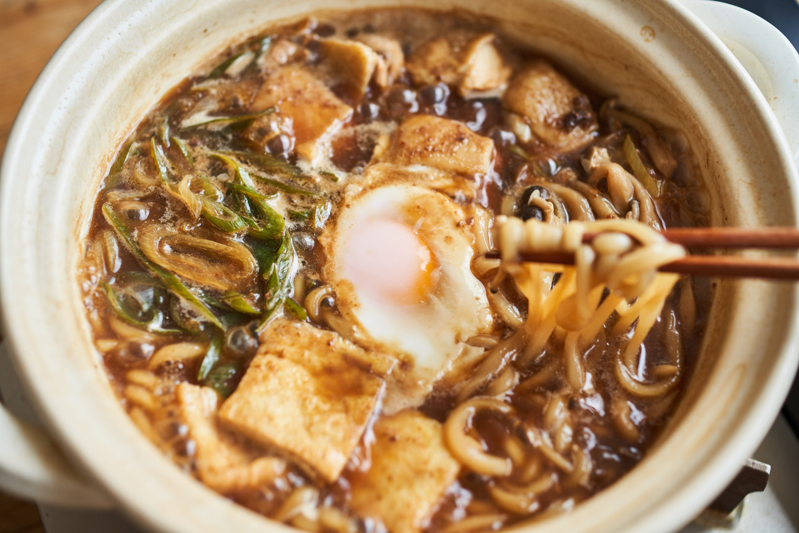 冷凍うどんで簡単に作れる、「みそ煮込みうどん」の作り方です。