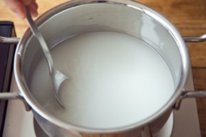・米のとぎ汁は、しっかりお米を研いだ、濃いものを用意するとよいです。