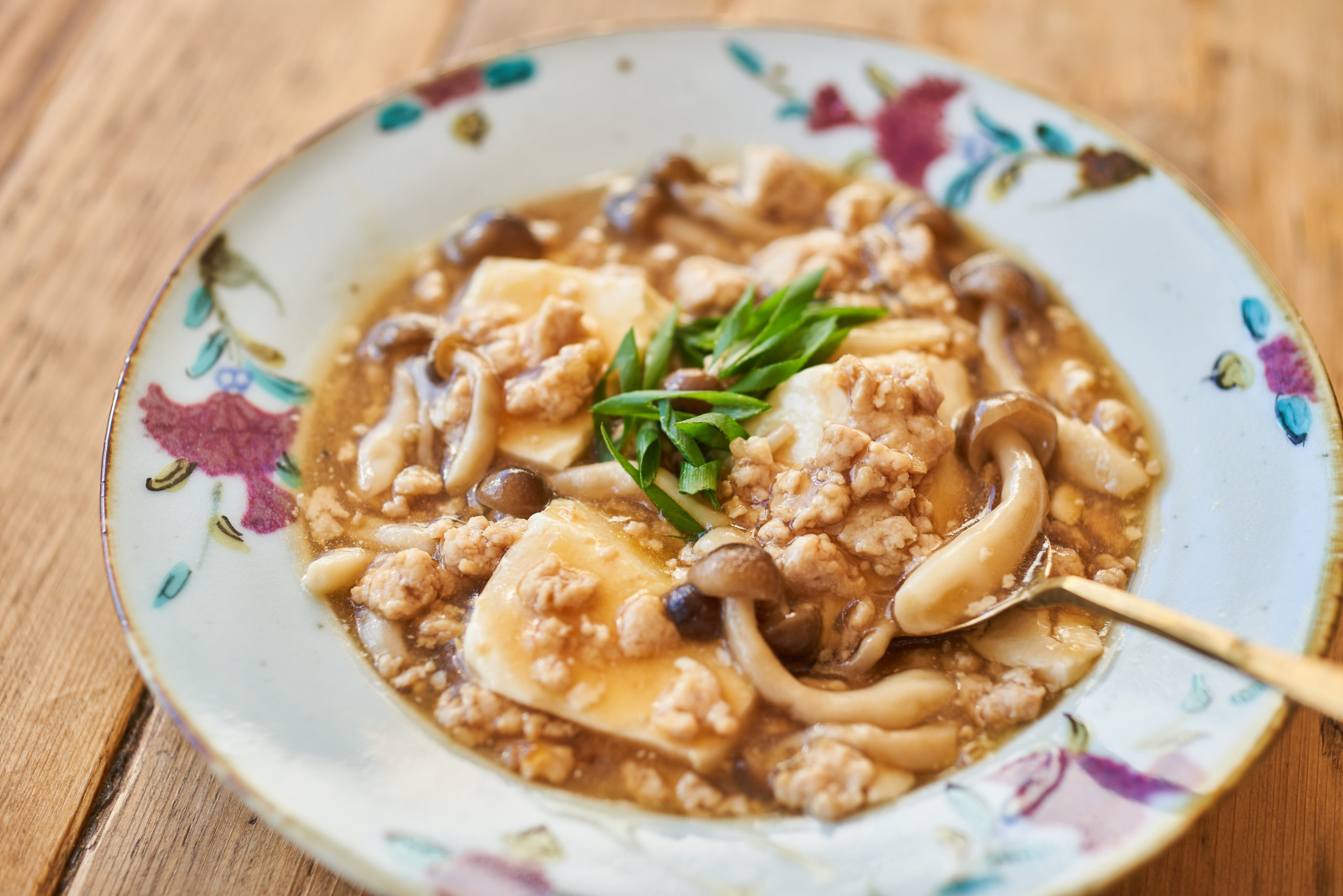 すぐにできる、きのこ入りのあんかけ豆腐の作り方です。