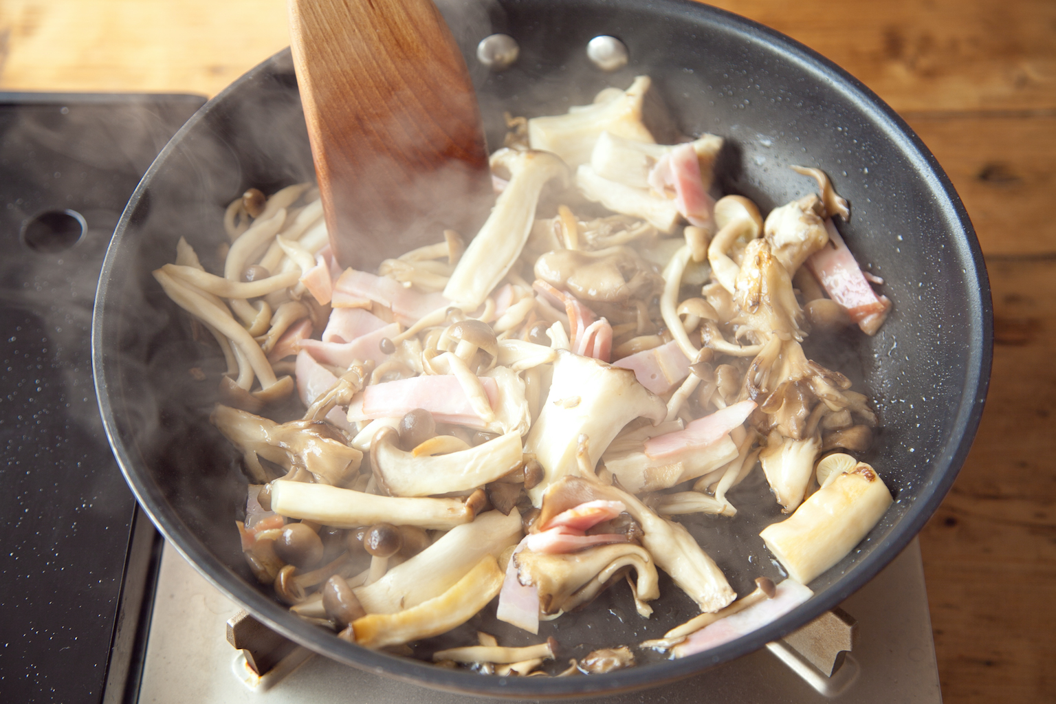 ・きのこはあまり触らず炒めることで、水っぽくならず、