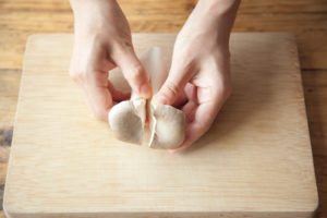 舞茸は半分にさく。